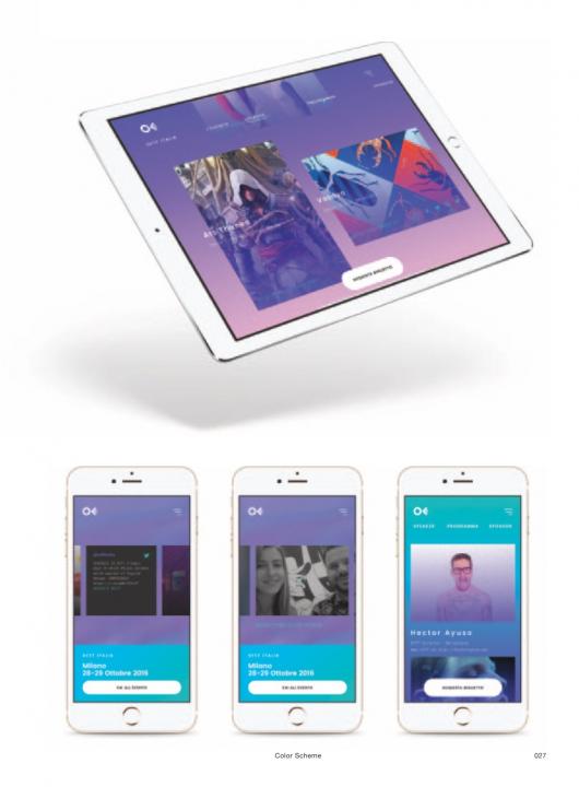 The relationship between fonts, colours, shape and graphic visual effects is essential to achieve a balance between the flow of information and user experience.