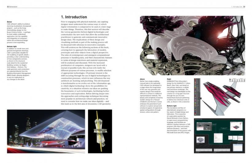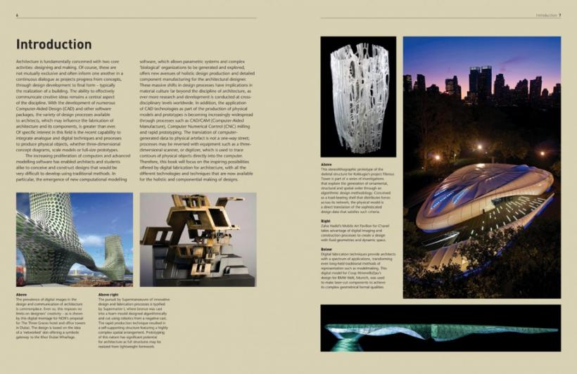 This book focuses on the inspiring possibilities for architecture that can be achieved with all the different technologies and techniques available for making complete designs or their components.