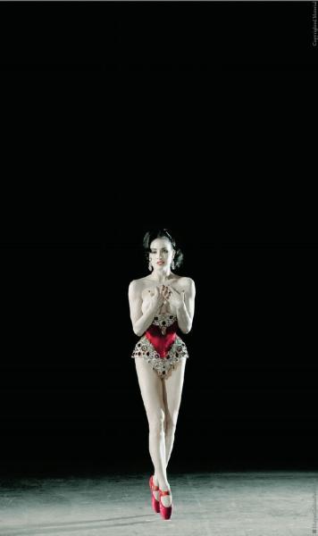 Bird of Paradise Show: Inside a posh gilded Victorian birdcage, burlesque′s brightest star reinvents the classic feather fan dance with two lush oversize feather fans of exotic, rare magenta pheasant feathers. In an extraordinary costume of beautifully curved feathers, Dita spins around on her golden perch, and treats audiences to an unforgettable wet and wild finale as sparkling water showers over her body.