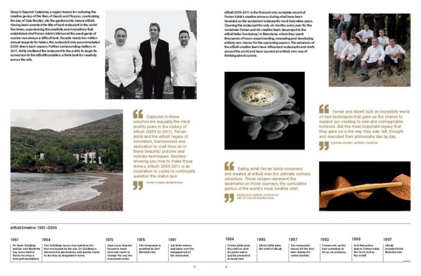 elBulli 2005-2011 is the catalogue raisonné of elBulli, which was widely regarded as the world's best restaurant until its closure in 2011. Having held three Michelin stars from 1997 to 2011, and regularly voted "Best Restaurant in the World" by a panel of 500 industry professionals, elBulli was at the forefront of the restaurant scene from when Ferran Adrià became a sole head chef in 1987. The restaurant only opened for six months every year in order that the rest of the year could be spent developing a completely new menu for each season. Many hours of development work went into the creation of each spectacular dish at the purpose-built elBulli workshop in Barcelona, and the gastronomic innovations of the creative team have influenced restaurants and chefs around the world.