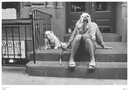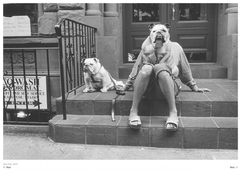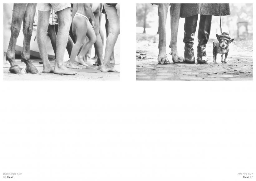 The book is arranged in nine chapters, each with a one-word title: Look, Move, Play, Read, Rest, Touch, Tell, Point, Stand. For Erwitt, whose photography is a study and celebration of life, these are the basic actions of life - the things people do. The photographs are not intended to illustrate the words, but the words act as a means of grouping and organizing, making broad connections and also playing with pun and ambiguity, in keeping with the visual games Erwitt plays.