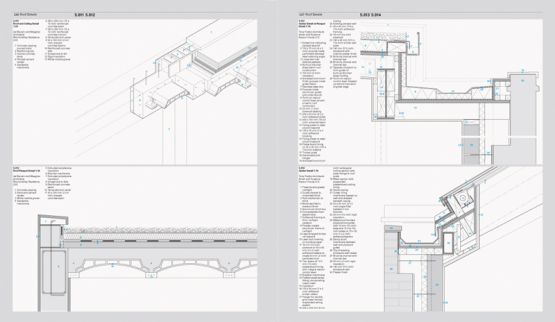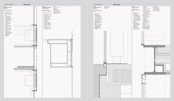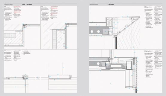 Each section contains at least 50 drawings drawn to a set range of scales: 1:5, 1:10 or 1:50, with detailed keys explaining construction and material. Each drawing is cross-referenced to other details from the same house.