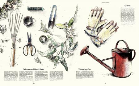 Evergreen also inspires those who already live in the midst of lush horticultural and sustainable oases. Straightforward plans and examples illustrate how to transform unused spaces, both indoors and out, into flourishing and functional patches. Sketched floorplans visually detail a myriad of projects including which plants thrive in dark living room corners or which foliage enjoys the damp environment of a bathroom. The profiles of both professional and hobbyist plant lovers provide an engaging guide to productively getting one’s hands dirty; herb gardens on fire escapes, greenhouses that double as living spaces, and community gardens atop roofs all awaken growing curiosities. From cactus farmers and florists to shop owners and activists, let Evergreen’s cast of characters guide you in making and maintaining a green utopia and in quenching gardening longings.