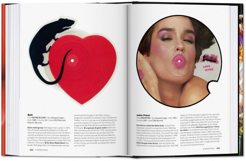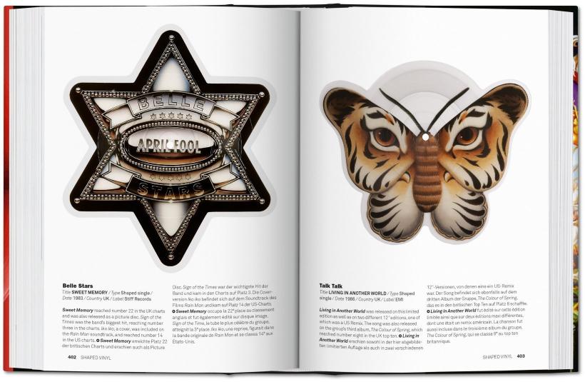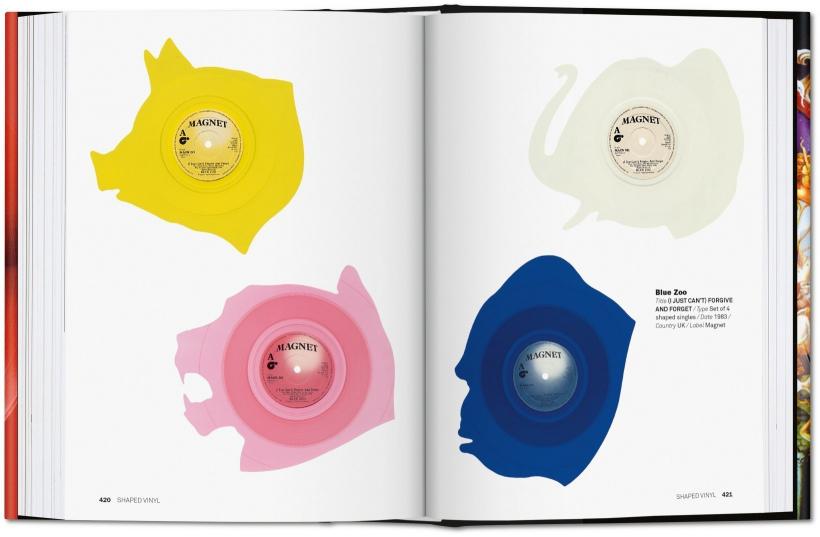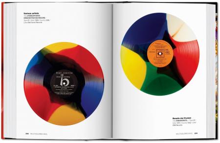 The discs are arranged thematically to span monochrome vinyl; unusual vinyl (including silver, gold or mirror vinyl as well as extremely rare glow-in-the-dark vinyl); multicoloured vinyl; etched vinyl (where music is pressed onto only one side); shaped vinyl (cut into forms that are different from the classic round disc); and picture discs (where a photograph or design is stamped onto the surface of the record). Page after page, this kaleidoscopic encyclopedia of game-changing vinyls is a colourful journey through era-defining records and artists.