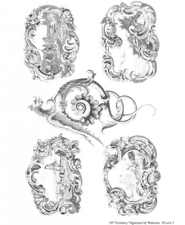New selection of material from Portefeuille Historique de l'Ornement/Ornaments of the Classical Masters: Comprising Ornamental Borders, Decorations, Shields, Vases, Alphabet of Letters, Grotesque Designs, Patterns for Gold and Silver-Smiths, A Hauser, Paris, 1841.