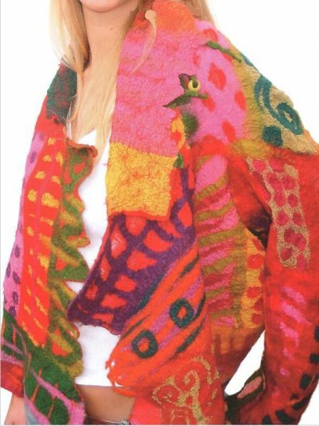 With clear instructions, construction patterns and stunning images of felted fashions from a range of felters, this is a great book on a subject growing in popularity (word count: 25,000). It features a range of techniques and patterns for making felted fashion items. It also covers things from felt corsages, scarves and hats to felt jackets and coats. It also features strong use of colour and embellishment - silks and velvet - in the felt.