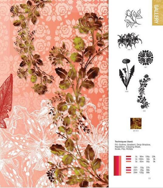 Includes 200 highly scalable, vector-based graphics saved in EPS and SVG formats; also saved as high-res JPEG files; 17 texture images; tutorials on scaling, twisting, repetition, patterns, colors, fills, layers, compound paths, and other invaluable techniques; gallery section offering inspiring design ideas; JPEGs included for all Gallery graphics
