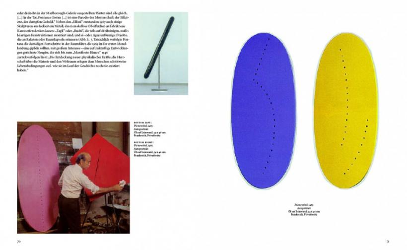 Italian artist Lucio Fontana tore apart the modern art establishment — literally. Trained initially as a sculptor, Fontana (1899-1968) blurred the lines between painting and sculpture by creating works that combined both form and color in a spatial context, most famously exemplified by his slashed canvases of the 1950s and 60s. Fontana`s work was truly conceptual, in that the ideas he wanted to express were more important than the actual work itself; with titles like Concetto Spaziale (Spatial Concept) and Scultura Spaziale (Spatial Sculpture), his pieces served as visual explanations of his ideas. From his early work in collaborating with architects through his years in Buenos Aires (where, in the mid-1940s, he published the famous "White Manifesto" and "Technical Manifesto of Spatialism," among others), his experimental light installations of the early 1950s, and his later experiments with various media, this book covers the entire career of Italy`s pioneering abstract artist.