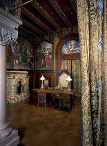 Anton Pössenbacher (1842–1920), cabinet-maker to the Bavarian court in Munich, was head of one of the largest late 19th-century German makers of luxury furnishings. His furniture, especially those for King Ludwig II of Bavaria (1871–1886), represent German Historicism at its zenith. Pössenbacher created almost all the furniture for the royal apartments at Linderhof, Herrenchiemsee and Neuschwanstein. Intricately carved and lavishly upholstered in gold brocade and dazzling embroidered pictures, these furnishings are highlights in the sumptuous interiors of Bavarian castles. Made to the specifications of an exacting monarch, these masterpieces of the cabinet-maker’s craft have lost nothing of their original fascination.