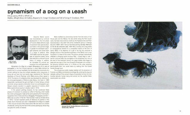 * a selection of the most important works of the epoch; each is presented on a 2-page spread with a full-page image and, on the facing page, a description/interpretation of the work and brief biography of the artist as well as additional information such as a reference work, portrait of the artist, and/or citations