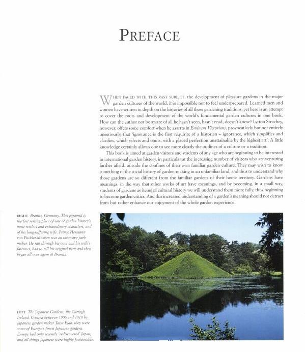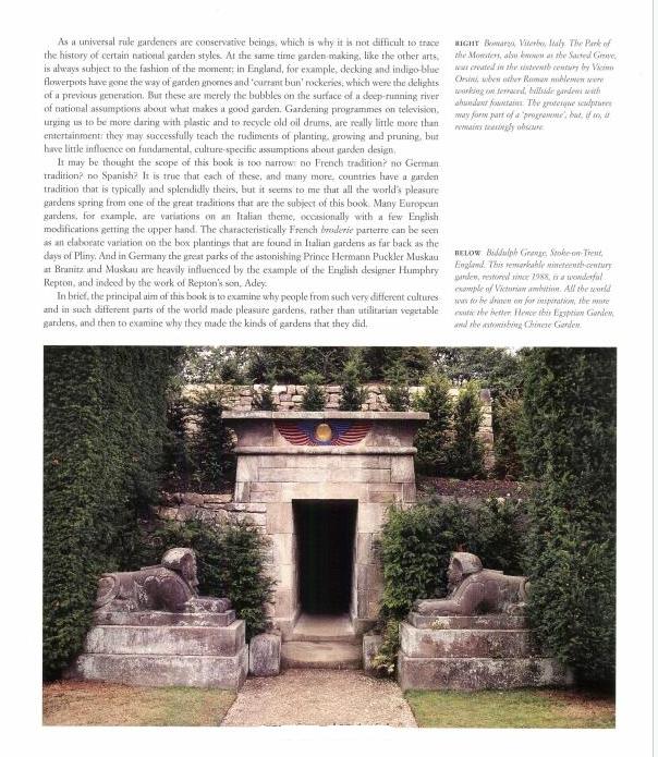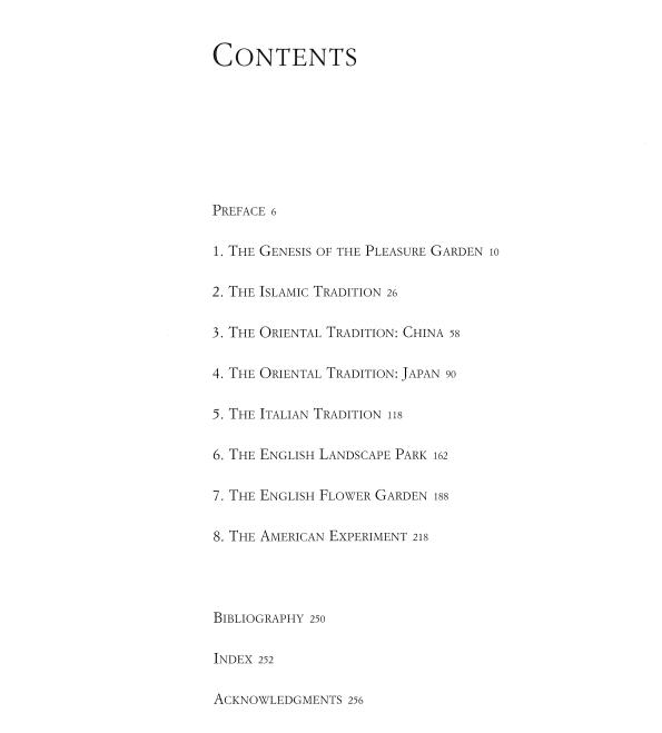 Why have the peoples of the world made pleasure gardens, and why have they made them in such different styles? All pleasure gardens derive their design inspiration from one of the world's six great gardening traditions - the Italian, the Islamic, the Chinese, the Japanese, the English flower garden, and the English park - and it is these that are the subject of this book.