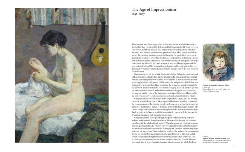 After starting a career as a bank broker, Paul Gauguin (born 1848) turned to painting only at age twenty-five. After initial successes within the Impressionist circle, he broke with Vincent van Gogh and subsequently, when private difficulties caused him to become restless, embarked on a peripatetic life, wandering first through Europe and finally, in the search for pristine originality and unadulterated nature, to Tahiti. The paintings created from this time to his death in 1903 brought him posthumous fame. In pictures devoid of any attempt at romantically disguising the life style of the primitive island peoples, Gauguin was able to convey the magical effect that both the landscapes and life of the natives — their body language, charm and beauty — had on him. Wearying of his reputation as a South Sea painter, Gauguin finally determined to return to France, but died of syphilis on the Marquis Islands before his departure.