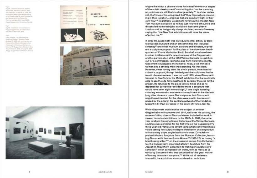 While Giacometti may be best known for his distinct figurative sculptures that emerged after World War II, including a series of elongated standing women, striding men, and expressive busts, this volume devotes equal attention to the artist’s early and midcareer development. It explores his lesser-known engagement with Cubism and Surrealism as well as African, Oceanic, and Cycladic art, while also highlighting his remarkable talents as a draftsman and painter alongside his sculptural oeuvre. Of particular focus is Giacometti’s studio practice, which is examined through rarely seen plaster sculptures that highlight the artist’s working process, in addition to historical photographs documenting his relationship with the Solomon R. Guggenheim Museum — which hosted the artist’s first US museum exhibition, in 1955 — and with New York City.