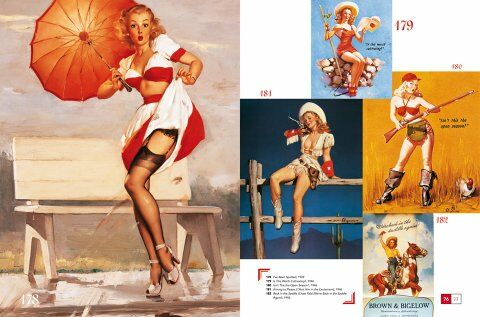 Post-depression America was in desperate need of a defining iconography that would lift it out of the black and white doldrums, and it came in the form of Gil Elvgren's Technicolor fantasies of the American dream. His technique - which earned him a reputation as "The Norman Rockwell of cheesecake" - involved photographing models and then painting them into gorgeous hyper-reality, with longer legs, more flamboyant hair and gravity-defying busts, and in the process making them the perfect moral-boosting eye-candy for every homesick private.