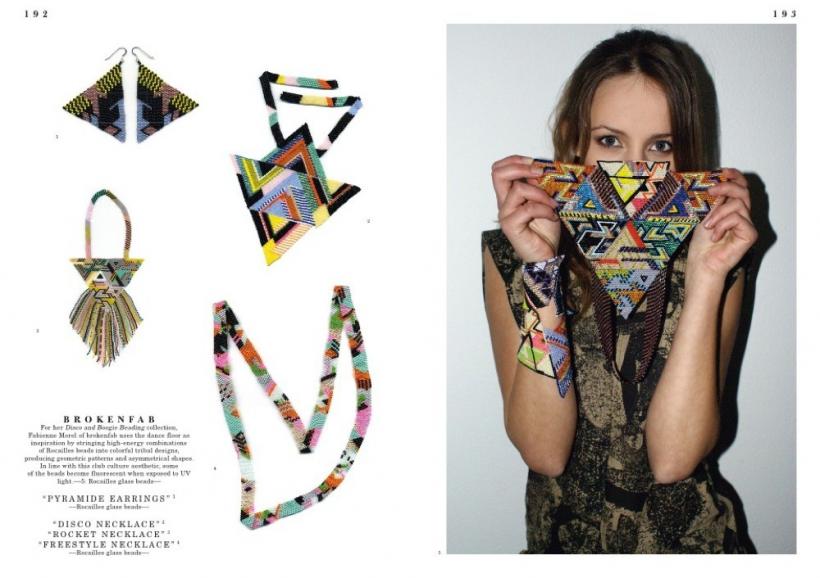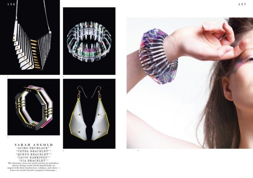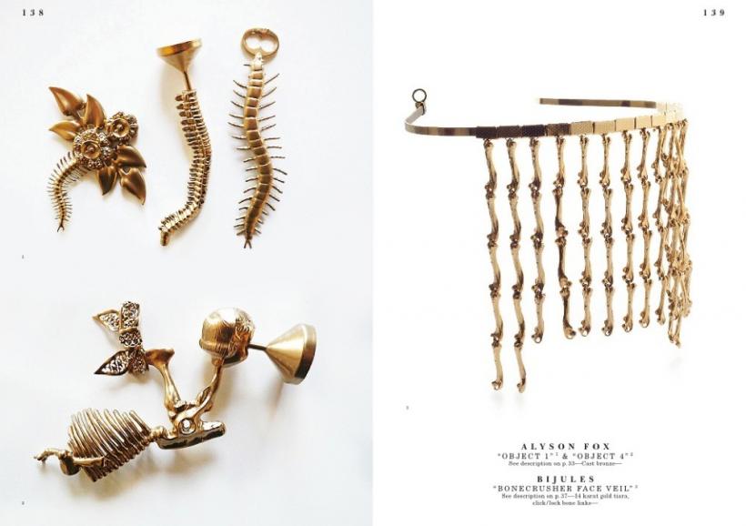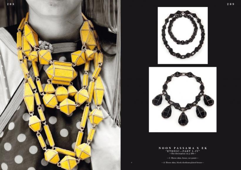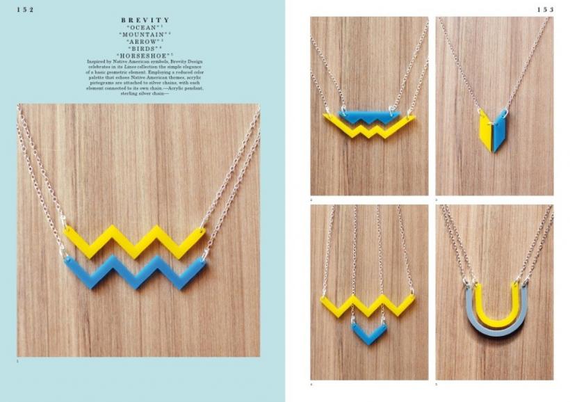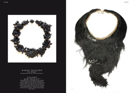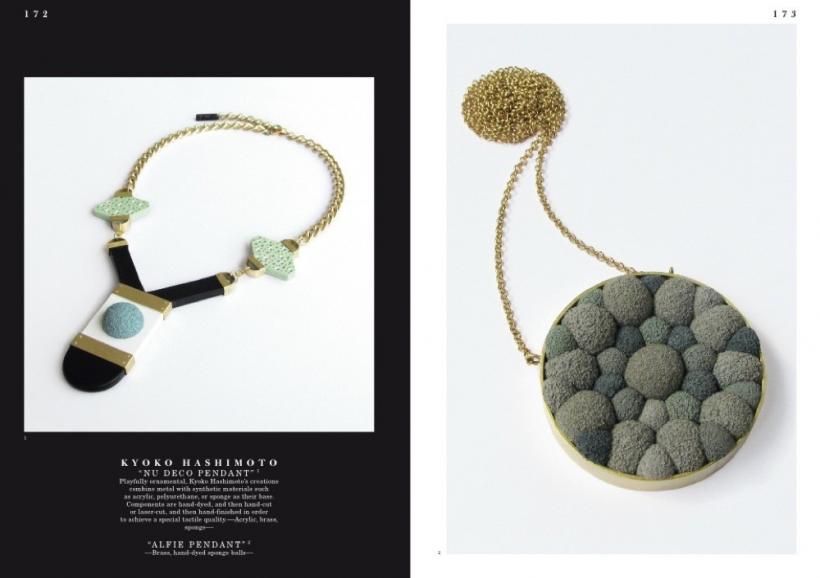The book features styles from glamorous to minimalistic, forms from geometric to organic, and materials from gold and silver to plastics and feathers. It includes work ranging from new interpretations of necklaces, rings, bracelets, earrings, and brooches to more experimental forms of body decoration.