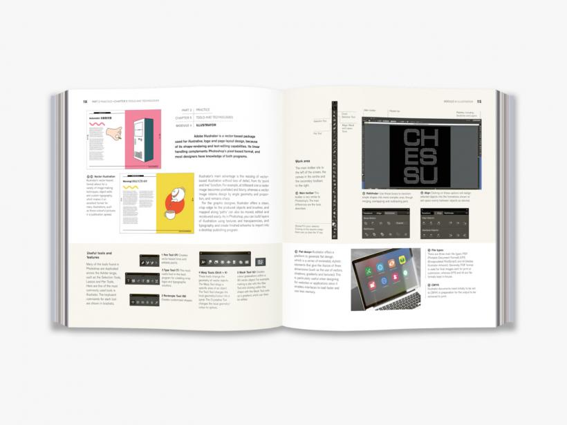 The book is organized into two main sections, ‘principles’ and ‘practice’. The first section deals with the fundamentals of design, such as composition, hierarchy, layout, typography, grid structure, colour and so on. The second section puts these basics into practice and gives information about studio techniques and production issues relevant to a number of different graphic design disciplines. The last part of the second section provides an overview of some of the different career choices open to students entering the graphic design field.