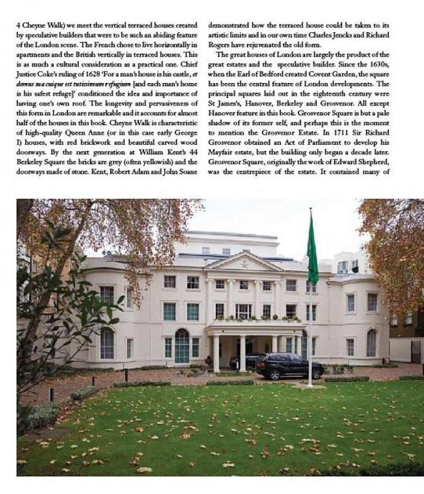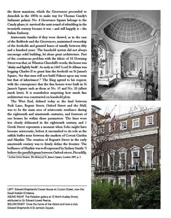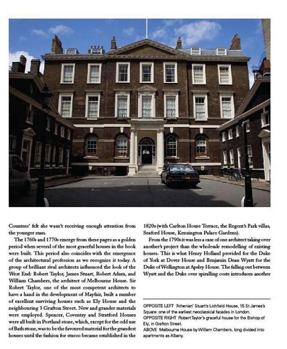 Every house has its own story to tell. This might be the colourful history of the occupants (such as the Duke of Wellington entertaining ladies at Apsley House), the great art collections they held (the Titians at Bridgewater House or Sam Courtauld's Impressionist paintings at Home House), or the architectural wonders of William Kent's 44 Berkeley Square and Burges's Tower House in Melbury Road. The book promises to be a great revelation.
