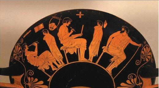 Beautiful photographs of painted vases from ancient Greece, with depictions of famous myths or scenes from everyday life