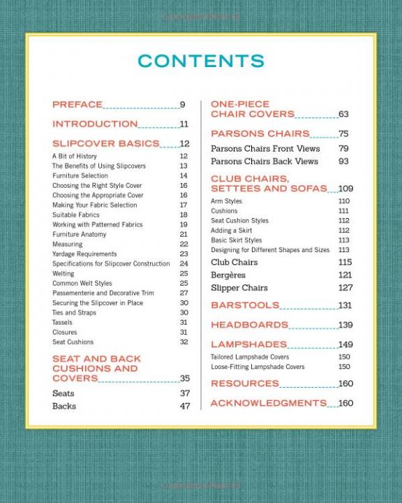 The book also provides the tips needed in planning the style, design and construction of slipcovers for a home.