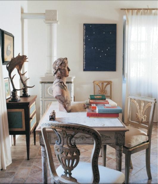 The book features more than 40 homes throughout the world--from New York penthouses and artist lofts to seventeenth-century Italian villas and country homes in Morocco--each personally selected by Gili and shown in full. Each house is accompanied by a short descriptive text by Susanna Salk. Sprinkled throughout the book are 10 short texts by selected homeowners (Isabella Rossellini, Mary Randolph Carter, Muriel Brandolini, Marella Caracciolo, Paul Fortune, and Beatrice Monti, among others) describing a personal history of the individual spaces.