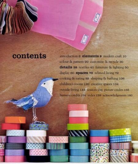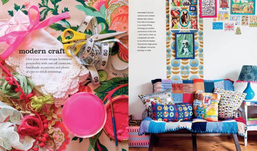 The book begins with the Ingredients of the look, from the basics of modern craft today to how to make colour and pattern work. It focuses on ingenious ways to recycle and reuse, from transforming furniture with a lick of paint to finding new uses for everyday items.