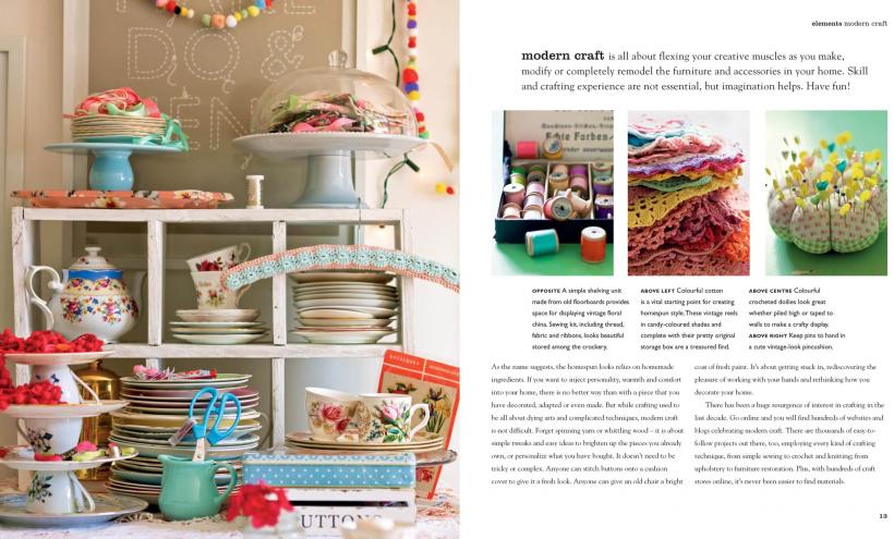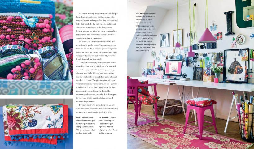 The Homespun look is about supporting artists and craftspeople, hunting down one-of-a-kind gems made by people with talent and passion. Fans of Homespun Style are no stranger to a flea market, online auction or second-hand store either, always on the lookout for unusual furniture and quirky accessories. Interiors stylist Selina Lake and writer Joanna Simmons show how this homey, crafty look has been given a modern twist with cheerful colours, tactile fabrics and bold combinations.