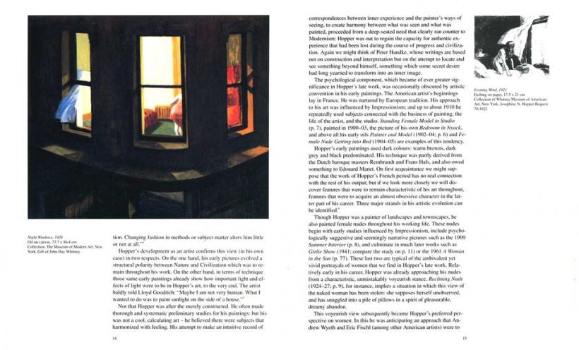 Edward Hopper (1882-1967) is considered as one of the first important American painters in 20th century art. After decades of patient work, Hopper enjoyed a success and popularity that since the 1950s has continually grown. In canvas after canvas he painted the loneliness of urban people. Many of Hopper’s pictures represent views of streets and roads, rooftops, and abandoned houses, depicted in a brilliant light that strangely belies the melancholy mood of the scenes. Hopper’s paintings are marked by striking juxtapositions of color, and by the clear contours with which the figures are demarcated from their surroundings. His extremely precise focus on the theme of modern men and women in the natural and man-made environment sometimes lends his pictures a mood of eerie disquiet. On the other hand, Hopper’s renderings of rocky landscapes in warm brown hues, or his depictions of the seacoast, exude an unusual tranquillity that reveals another, more optimistic side of his character.