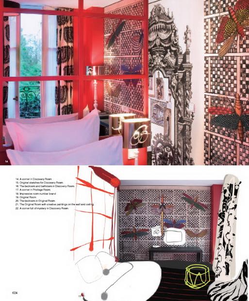 The book collects 29 fashion and art forward hotels in 14 countries throughout the world, which are designed by world famous fashion designers or artists, including these glorious names: George Armani, Christian Lacroix, Karl Lagerfeld, Rosita Missoni, Diane von Furstenberg, Oscar de la Renta, Frank Moschino, Martin Margiela, John Olsen, Christina Zeidler, etc.