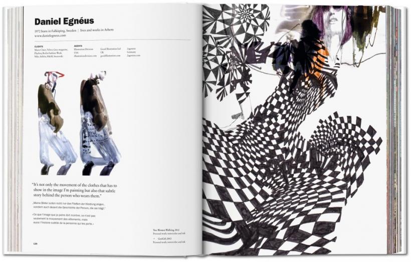Following an introduction by illustration expert Steven Heller, the historical essay by art and fashion historian Adelheid Rasche provides an in-depth exploration of the subject. Looking back to the 17th century, she draws a timeline of fashion illustration until today, accompanied by images such as an early etching by François Watteau, a drawing by Paul Iribe for the book of the famous Parisian couturier Paul Poiret, and illustrations by the highly acclaimed masters of modern fashion illustration René Gruau and Antonio Lopez, as well as, from more recent years, François Berthoud.