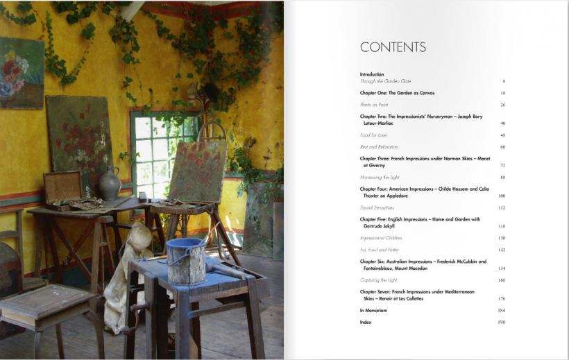 The first section uses contemporary paintings and photographs to see the who, what and where of Impressionist gardens - planting, eating, loving, sleeping, children, animals, working and painting. The second section, illustrated with paintings, old photographs and modern images, starts at the horticultural source - the nurseryman Latour-Marliac at Temple sur Lot, then Monet at Giverny; American Impressionists at Old Lyme, Cos Cob and Appledore in the USA; Gertrude Jekyll at Munstead Wood and beyond; the Heidelburg School and Frederick McCubbin at Fontainebleau; and, chronologically last but not least, Renoir at Les Colettes.