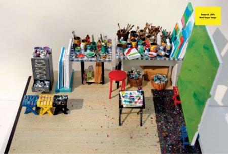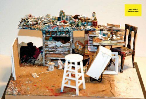 Determined to ground his research in the physical world, Fig began constructing a series of diorama-like miniature reproductions of the studios of modern art's most legendary painters, such as Jackson Pollock and Willem de Kooning.
