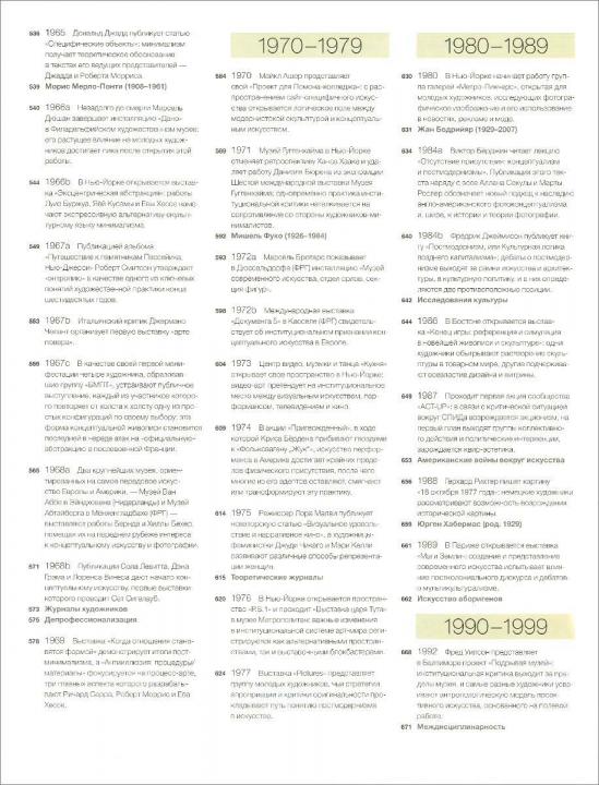1968b Публикации Сола Левитта, Дэна Грэма и Лоренса Винера дают начало концептуальному искусству, первые выставки которого проводит Сет Сигелауб.