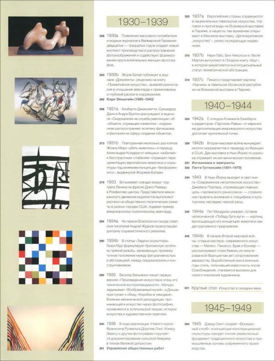 1934b В статье «Задачи скульптора» Генри Мур формулирует британскую эстетику прямой резьбы, занимающую промежуточное положение между фигуративностью и абстракцией, между сюрреализмом и конструктивизмом.