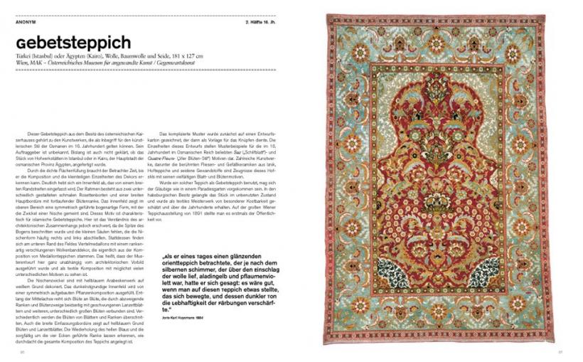 The art which arose from the 7th century in the Islamic empires reached from Spain and Morocco to the borders of China. It bore the stamp above all of Arabs, Persians and Turks, but outstanding contributions also came from Egypt and India. "Islamic Art" presents prominent examples: luxury ceramics, prayer mats, goldsmithery, as well as witnesses to the decorative arts and calligraphy – and above all the masterpieces of the splendidly colourful courtly book illumination of Persia and the Mughal emperors of India. The book examines the contributions of the different countries and how they influenced each other, and in this way vividly illustrates the unfolding of the delicate splendour and fairytale beauty of Islamic art from its beginnings into the modern era.