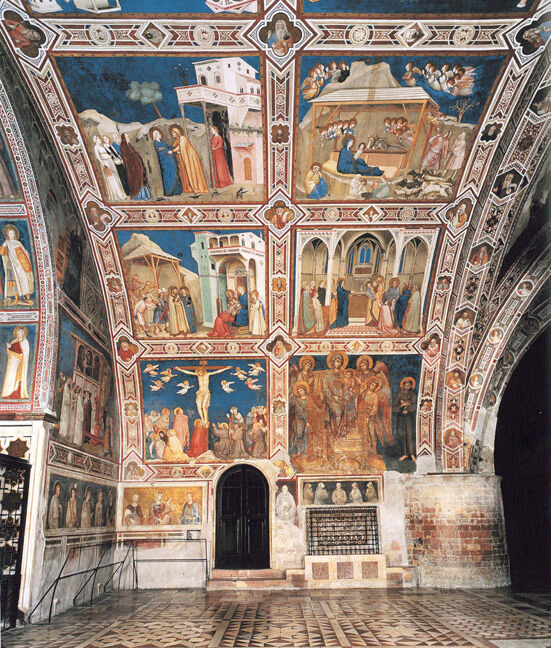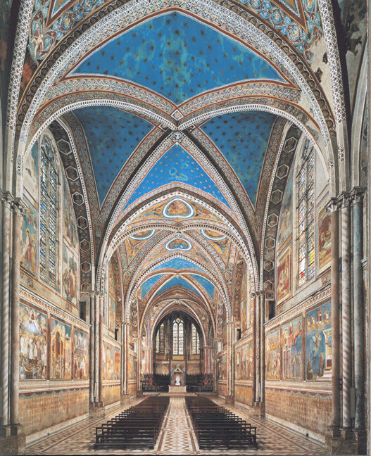 Italian Frescoes: The Age of Giotto presents twenty-two outstanding fresco cycles. Created during the late thirteenth and early fourteenth centuries, these cycles set new standards for painting and an innovative vision of man, paving the way for the monumental achievements of the Renaissance. It was at this time that fresco painting was not only commissioned for churches and chapels, but also for such secular places as town halls and royal residences with humanist in addition to religious themes. The fresco cycles featured here include brilliant works by Giotto in Assisi, Padua, and Florence; dramatic paintings by Cimabue, thought to be Giotto’s teacher; Pietro Cavillini in Rome; and the Sienese artists Simone Martini and Pietro and Ambrogio Lorenzetti — all of these works still visible on walls and ceilings of palaces and churches spanning Italy from the Veneto to Rome.
