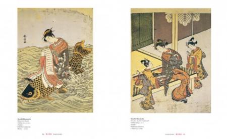 The major section of the book consists of the 139 reproductions, grouped by artist, each accompanied by a detailed, sensitive commentary. Street scenes, lovers' trysts, festivals, portraits of courtesans and actors, landscapes and travelogues - these are the motifs of the ukiyo-e print. The dominant theme, however, is woman's beauty, the grace of her posture and attitudes, and the decorative aesthetics of her flowing garments. Amongst the most celebrated of the artists featured here are Utamaro, with his beautiful courtesans and geishas; Sharaku, with his portraits of actors on the kabuki stage; Hokusai, with his landscapes, among them the "36 Views of Mount Fuji"; and Hiroshige, with his "53 Stations on the Tokaido" and his "100 Views of Famous Places in and around Edo".
