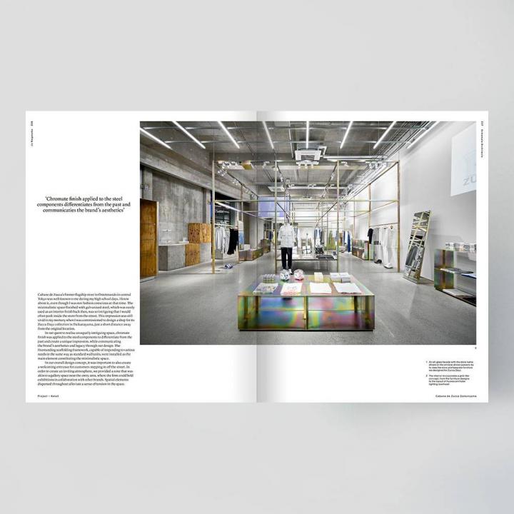 - In-depth features of the different projects ranging from exhibitions and furniture to retail and residential.