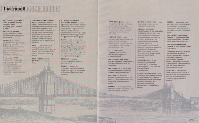 - описание и анализ всех известных в мире типов мостов - с глубокой древности и до наших дней;
