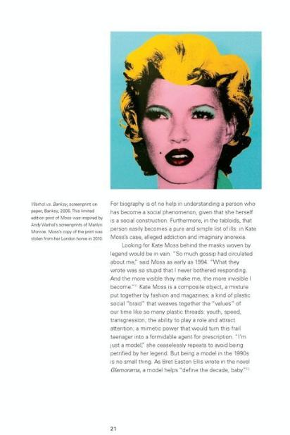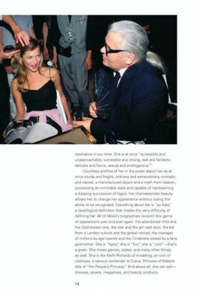 Years after her discovery at age fourteen at New York City’s John F. Kennedy Airport and her quick ascent to the top of the supermodeling world and choice luxury-brand figurehead, Kate Moss represents an unusual success story: that of a middle-class teenager who became one of the best-paid models in the world with no apparent effort. Hers is a story of endless reinvention: more than twenty years later, despite tabloid scandals, drug use, rehab, and tumultuous high-profile romances, Kate Moss appears before us as a fresh creation each time, an ideal subject able to adapt to any circumstance, recast herself ceaselessly through self-staging and self-narration, and make the world fall in love with her over and over again.