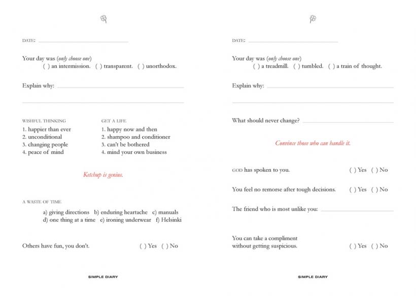 Keel's Simple Diary offers structure for those who don't have time to wonder, making it easy to record life's moments. It gives the pleasure of a quick response and the sense that no matter what's wrong, more is right.