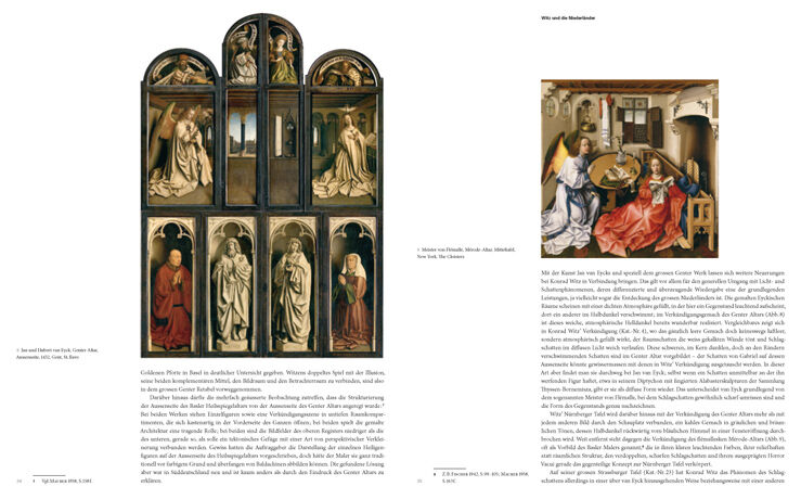 There is hardly any doubt among researchers that the approximately twenty panels for four commissioned altars were made by Witz himself. All the more diverse, then, are the opinions about his education, career, sphere of influence, and successors. This publication discusses new theses with respect to Witz’s artistic background.