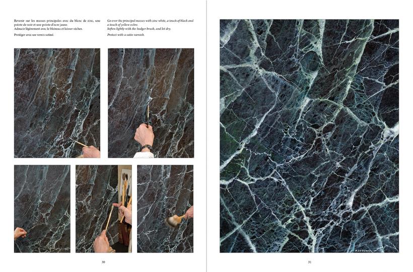Trois grands classiques de l’imitation du marbre sont étudiés à travers des pas à pas techniques très détaillés, étayés chacun par plus de 20 photographies retraçant les étapes de la réalisation. L’imitation de la brèche grise, du jaune de Sienne et du vert de mer n’auront ainsi plus de secret pour le lecteur.
