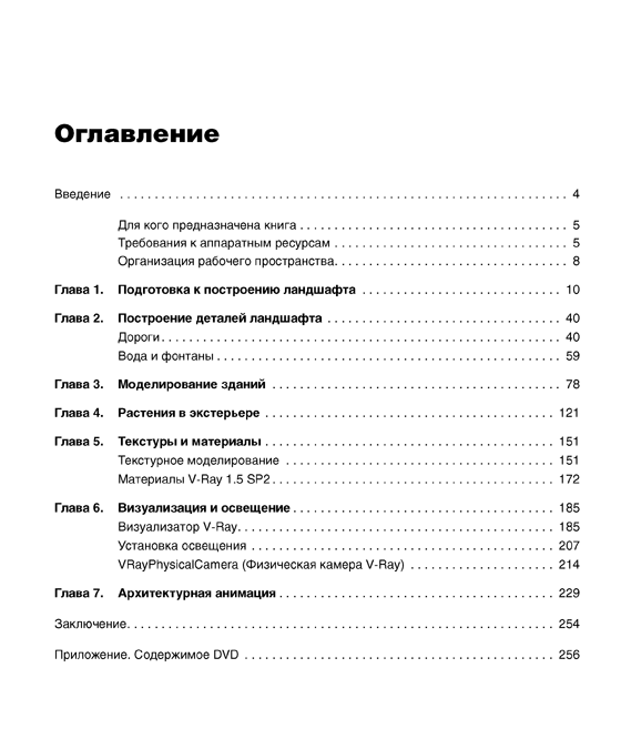 На прилагаемом к книге DVD — сцены описанных в книге упражнений, 32- и 64-битные триал-версии 3ds Max, подборка различных текстур и моделей для интерьера, а также подключаемые модули.