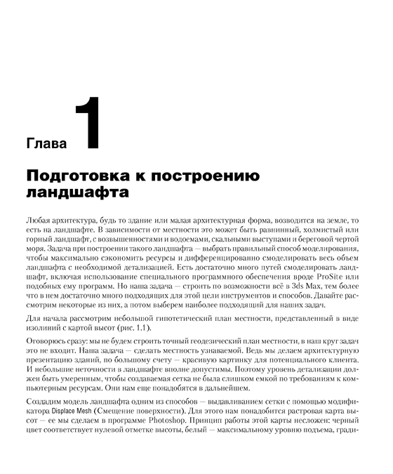 Эта книга — отличное подспорье архитекторам и практикующим дизайнерам. Она рассказывает о создании в программе 3ds Max экстерьерных композиций. Книга поможет научиться моделировать здания и ландшафты, «наполнять» их растительностью — от нескольких деревьев до обширных лесных массивов, применять ландшафтное текстурирование, создавать собственные уникальные текстуры.