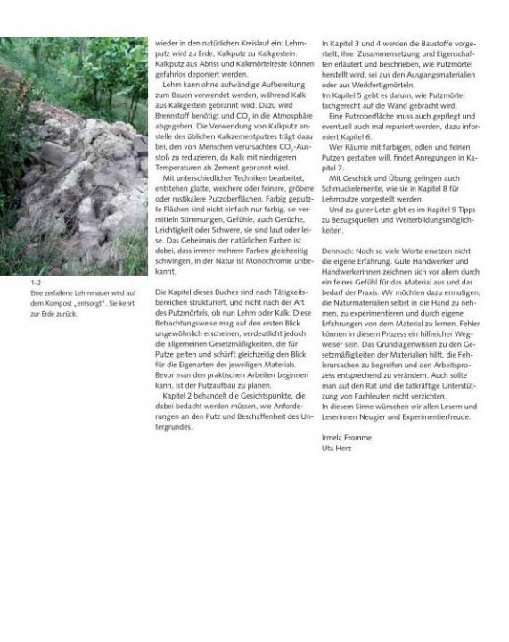 Das Buch wendet sich an alle, die Putze mit den Naturbaustoffen Lehm und Kalk ausführen möchten, an Fachkräfte wie auch an handwerklich geschickte Laien.