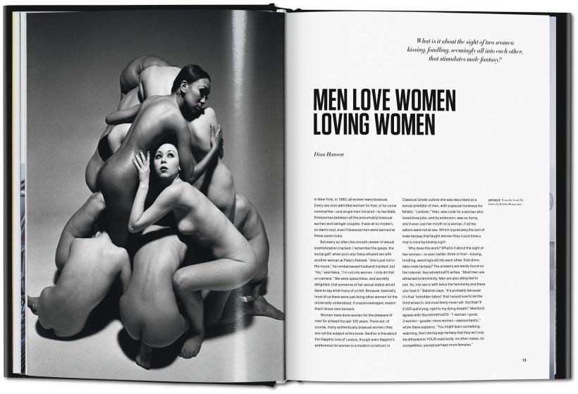 Over 300 photos, in black & white and color, celebrate the obliging women who’ve kissed, fondled, and fulfilled men’s lesbian cravings, in images created for pornography as well as “fine art.” Contemporary photographers include Nobuyoshi Araki, Guido Argentini, Bruno Bisang, Bob Carlos Clarke, Ed Fox, Ren Hang, Petter Hegre, Richard Kern, Will Santillo, and Kishin Shinoyama. Subjects range from simply affectionate to everything two women can do when they want to please male viewers as much as each other.
