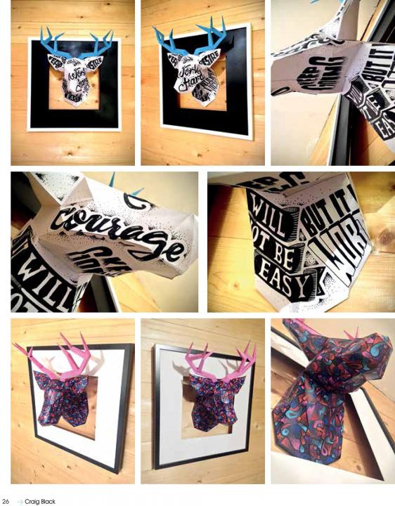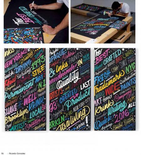 The book is divided into two parts; in the first half each artist has selected examples of their work and discussed their influences and early career, while in the second half each of them provides a new piece of work, talking us through the creative and production process, step by step, from the initial idea and sketch, explaining how the dimensions were worked out and the letters combined to ultimately form a harmonious message.
