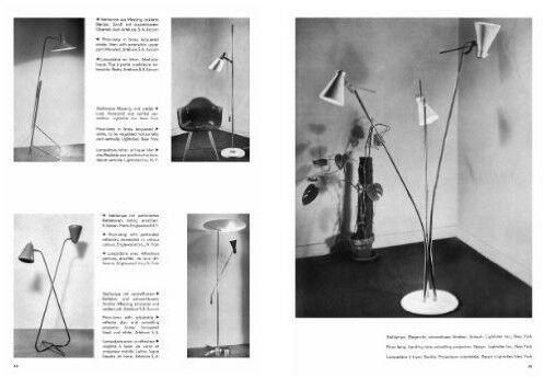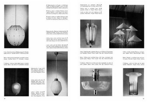 In 1953 Alexander Koch published his book Neuzeitliche Leuchten. Nowadays Koch's then selection of lighting by international designers and manufacturers seems truly visionary. He presents a spectrum of diverse designs, whose origins lay not only in the addition of basic geometrical shapes as with the pre-war avant-gardists, but also in the respective temperaments of the different countries of origin. It is very apparent that after the war America, Scandinavia and Italy exerted a strong influence on designs hitherto rather dominated by Bauhaus purism in Germany.