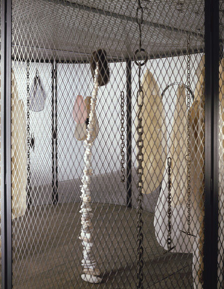 Louise Bourgeois, who has produced art since the 1930s, began in the 1990s to use her clothes and the clothes of her loved ones as components in her sculptures and drawings. It is as much a reincarnation of her past and her childhood as a confirmation of her relationship with memory. Her visual approach to fabrics transforms decorative accessories into emotional and personal references which, especially in her Cells and later in her drawings, create representations of a tormented and at the same time powerful womanhood. Further development of the artist’s work began in 2002: exploiting the iridescent colours and formal structural properties of pieces of her clothing, she created “The Fabric Drawings,” astonishing works alternating between floral figurative pieces and chromatic abstractions.
