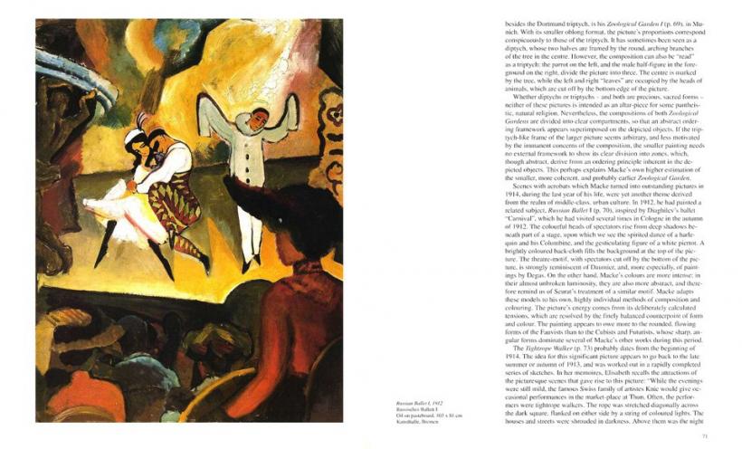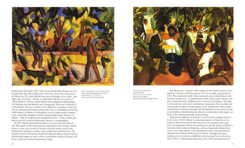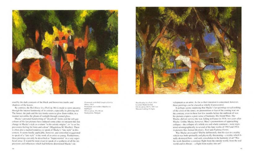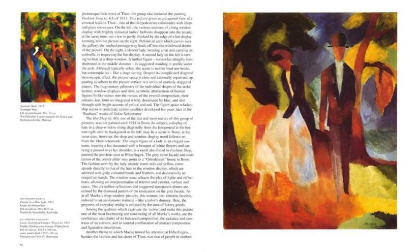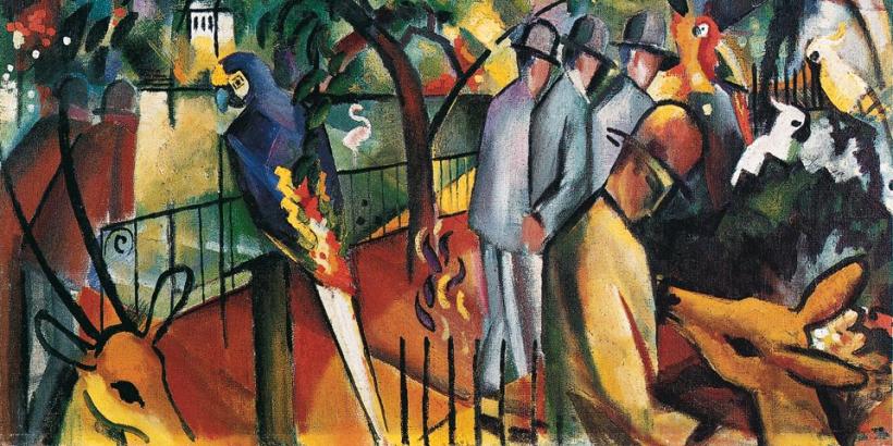 In the course of his short life, German painter August Macke (1887–1914) combined inspirations from extremely different sources into a unique and personal style. Macke was engaged with the world, closely following the development of abstract art and at the same time feeling tied to the Blauer Reiter movement of Munich. Macke developed a “flat” yet ornamental style, but always remained true to objective representation. His cheerful scenes of parks, zoos, and promenades with shop windows are filled with bold yet harmonious colors. Their brilliance reached its zenith in 1914 when he traveled with Klee and Moilliet to Tunis and became acquainted with the light of the African sun.